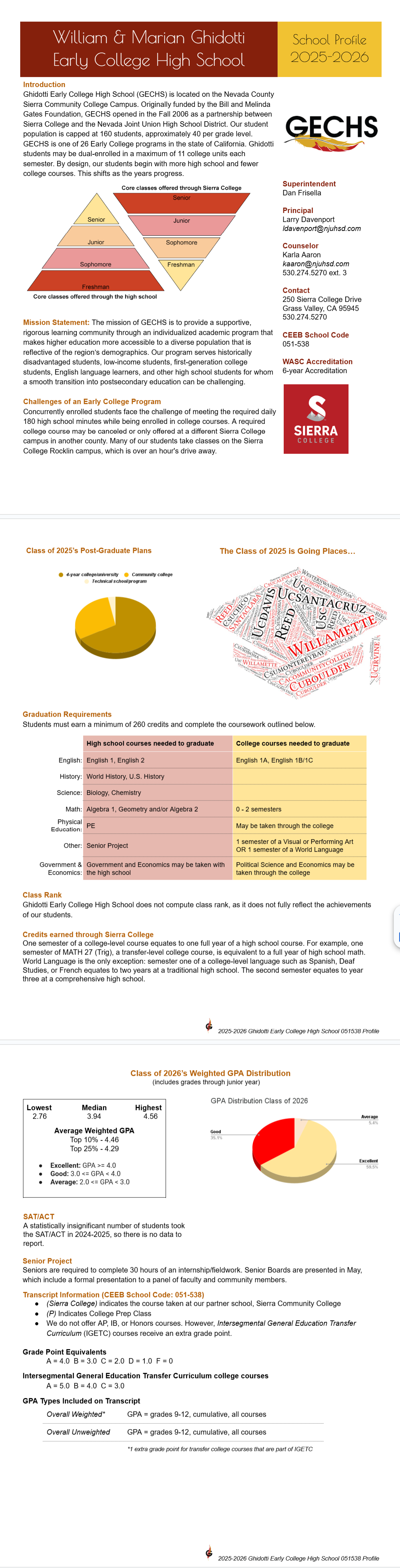 The school profile is created so that college admissions teams can understand the students in the context of their secondary education setting. The information below is based on a combination of the Ghidotti class of 2025 and the current senior class of 2026.